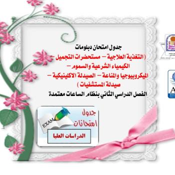 Diploma Exam schedule (Nutrition - Cosmetics - Forensic Chemistry and Toxicology - Microbiology and Immunology - Clinical Pharmacy - Hospital Pharmacy) for the second semester with a credit-hour system