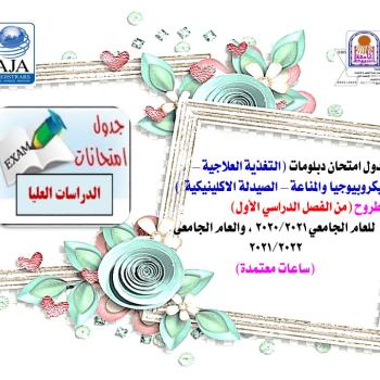 Diploma Exam Schedule (Therapeutic Nutrition - Microbiology and Immunology - Clinical Pharmacy) offered (from the first semester) for the academic year 2020/2021 and the academic year 2021/2022 (credit hours)