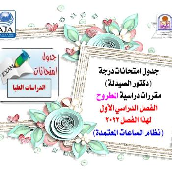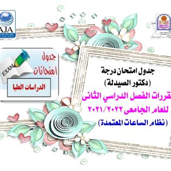 Doctor of Pharmacy Exam Schedule for the second semester courses for the academic year 2021/2022 (credit hours system)