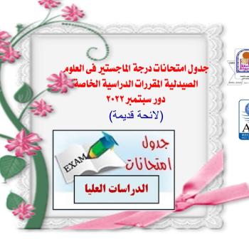 Master’s Degree Exam Schedule in Pharmaceutical Sciences Special Courses September 2022 (Old)