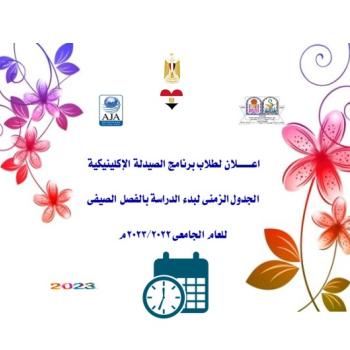 Announcement for students of the clinical pharmacy program, the timetable for starting the study in the summer semester for the academic year 2022/2023