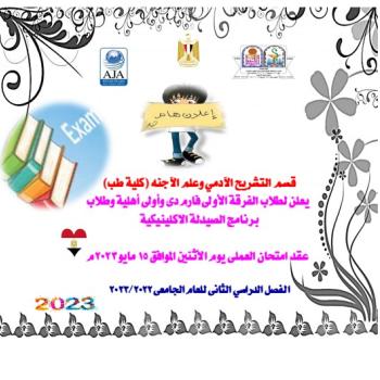 The Department of Human Anatomy and Embryology (Faculty of Medicine) announces to the students of the first year Pharm D, the first year Al-Ahlia University, and the students of the Clinical Pharmacy program that a practical exam will be held on Monday