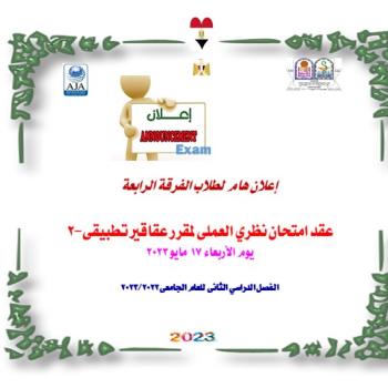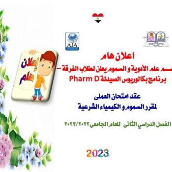 An Important Announcement for Fourth Year Students A theoretical and practical exam for the Applied Drugs Pharmacognosy-2 will be held on Wednesday, May 17, 2023