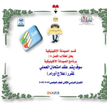 The Department of Clinical Pharmacy announces to students (semester 8) of the clinical pharmacy program that a practical exam will be held for the course (Pharmacotherapy of oncological diseases)