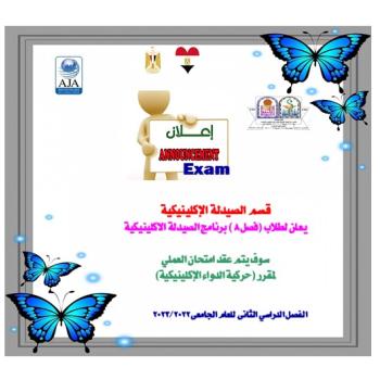 The Department of Clinical Pharmacy announces to students (semester 8) of the clinical pharmacy program that a practical exam will be held for the course (clinical pharmacokinetics)