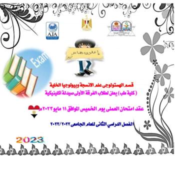 The Department of Histology, Histology and Cell Biology (Faculty of Medicine) announces to students of the first year of clinical pharmacy that a practical exam will be held on Thursday, May 11, 2023