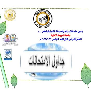 Exam schedule for First Year Students of the Clinical Pharmacy Program at Al-Ahlia University, first semester of the academic year 2022/2023
