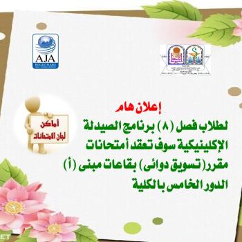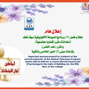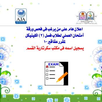 نتيجة امتحان العملي لمقرر عقاقير1 للفرقة الاولى برنامج الصيدلة الاكلينيكية