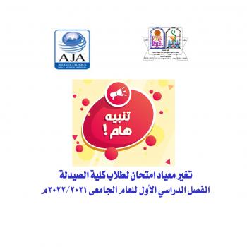• Schedule of exams for students of the Clinical Pharmacy Program, first semester, for the academic year 2021/2022