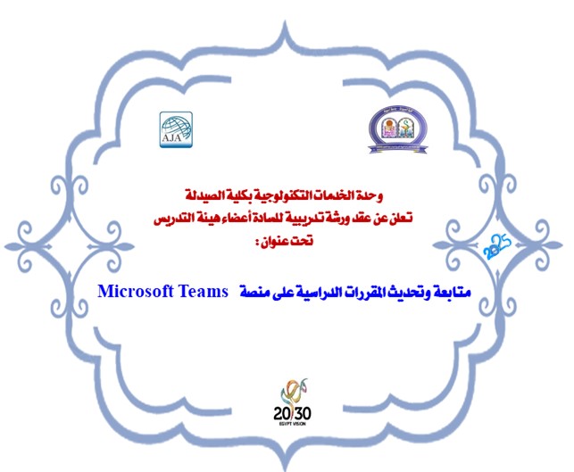 The Technological Services Unit at the Faculty of Pharmacy announces the organization of a training workshop for faculty members entitled: "Monitoring and Updating Course Materials on Microsoft Teams"