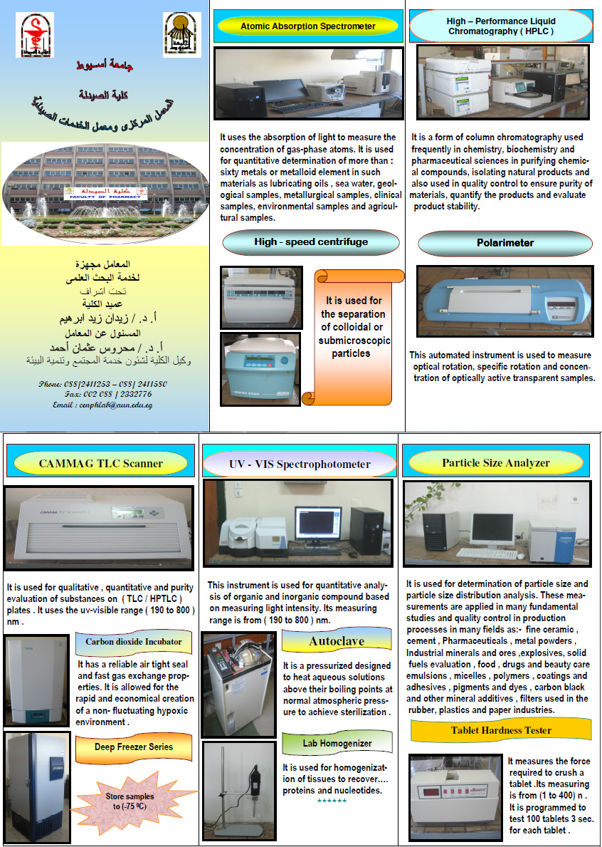 - The laboratory provides a huge number of services to the researchers and students of the Faculty of Pharmacy, such as: