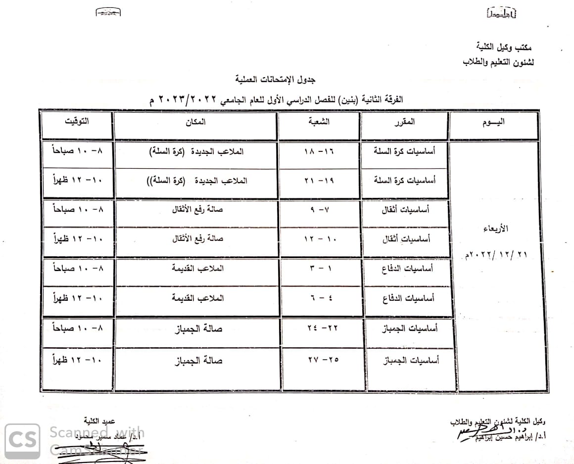 جداول الامتحانات