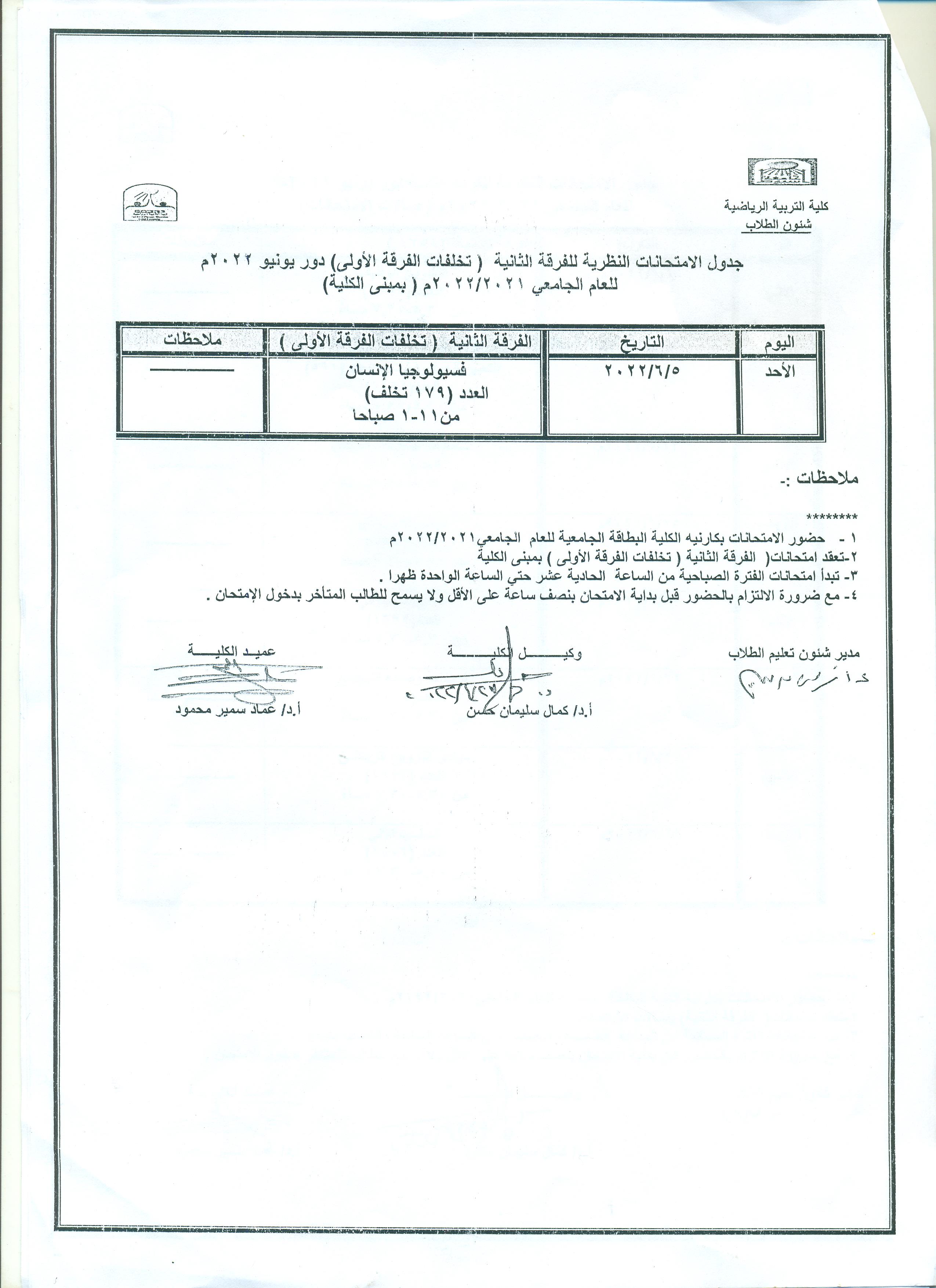 اعلان هام لفرقة الثانية تخلفات ( مادة الفسيولوجى )
