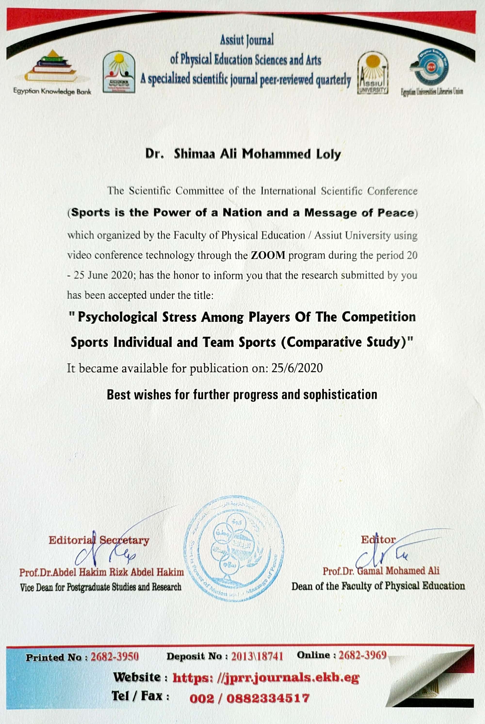 تمثل الحياة داخل المجتمع منعطفاً حاداً فى حياة الفرد، فالفرد لابد من أن يقوم بتطوير الأساليب التكيفيه، فالفرد يواجه جملة من المشكلات تتطلب منه أن يعرفها ويكون ملم بأساليب مواجهتها ، ليتمكن من التعامل مع الضغوط النفسية الناتجة عنها، حيث يواجه الفرد فى حياته العديد من الأحداث الضاغطة التى تضمن خبرات غير المرغوب فيها، وأحداث قد تنطوي على الكثير من مصادر التوتر، وعوامل الخطر والتهديد فى كافة مجالات الحياة، وهذا من شأنه أن يجعل الأحداث الضاغطة تلعب دوراً فى نشأة الأمراض النفسية والجسمية،ويهدف البحث التعرف على الضغوطات النفسية لدى لاعبي الرياضات الفردية والرياضات الجماعية بأندية محافظة أسيوط، حيث استخدمت االباحثة المنهج الوصفى بإستخدام الطريقة المسحية ، وأجريت الدراسة على عينة عمدية من لاعبى ولاعبات الرياضات التنافسية الفردية ( العاب القوى –تنس الطاولة – التنس الارضي – السباحة ) والرياضات التنافسية الجماعية (السلة – القدم – اليد ) للمرحلة السنية من(16 – 19 ) حيث بلغ اجمالى العينة (474) لاعب ولاعبة،وقد أسفرت النتائج عنوجود فروق ذات دلالة إحصائية تعزي لمتغير النوع (إناث –ذكور) بالنسبة لبعدي الضغوط الشخصية لصالح الذكور وبعد الضغوط الصحية لصالح الإناث ، بينما لا توجد فروق ذات دلالة إحصائية بالنسبة لبعدى الضغوط الاجتماعية والضغوط المهنية عند مستوى الدلالة (0.05)، توجد فروق ذات دلالة إحصائية بين لاعبي ولاعبات الرياضات التنافسية الفردية والجماعية بالنسبة لبعدي الضغوط الشخصية والضغوط الصحية لصالح لاعبي ولاعبات الرياضات الجماعية ، بينما لا توجد فروق ذات دلالة إحصائية فى بعد الضغوط المهنية، وتوجد فروق ذات دلالة إحصائية لبعد الضغوط الاجتماعية لصالح لاعبي ولاعبات الرياضات الفرديةعند مستوى الدلالة (0.05).