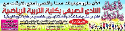 سوف يتم بدء نشاط النادى الصيفى بكلية التربية الرياضية بمشيئة الله تعالى يوم الاحد الموافق 15/5/2016م