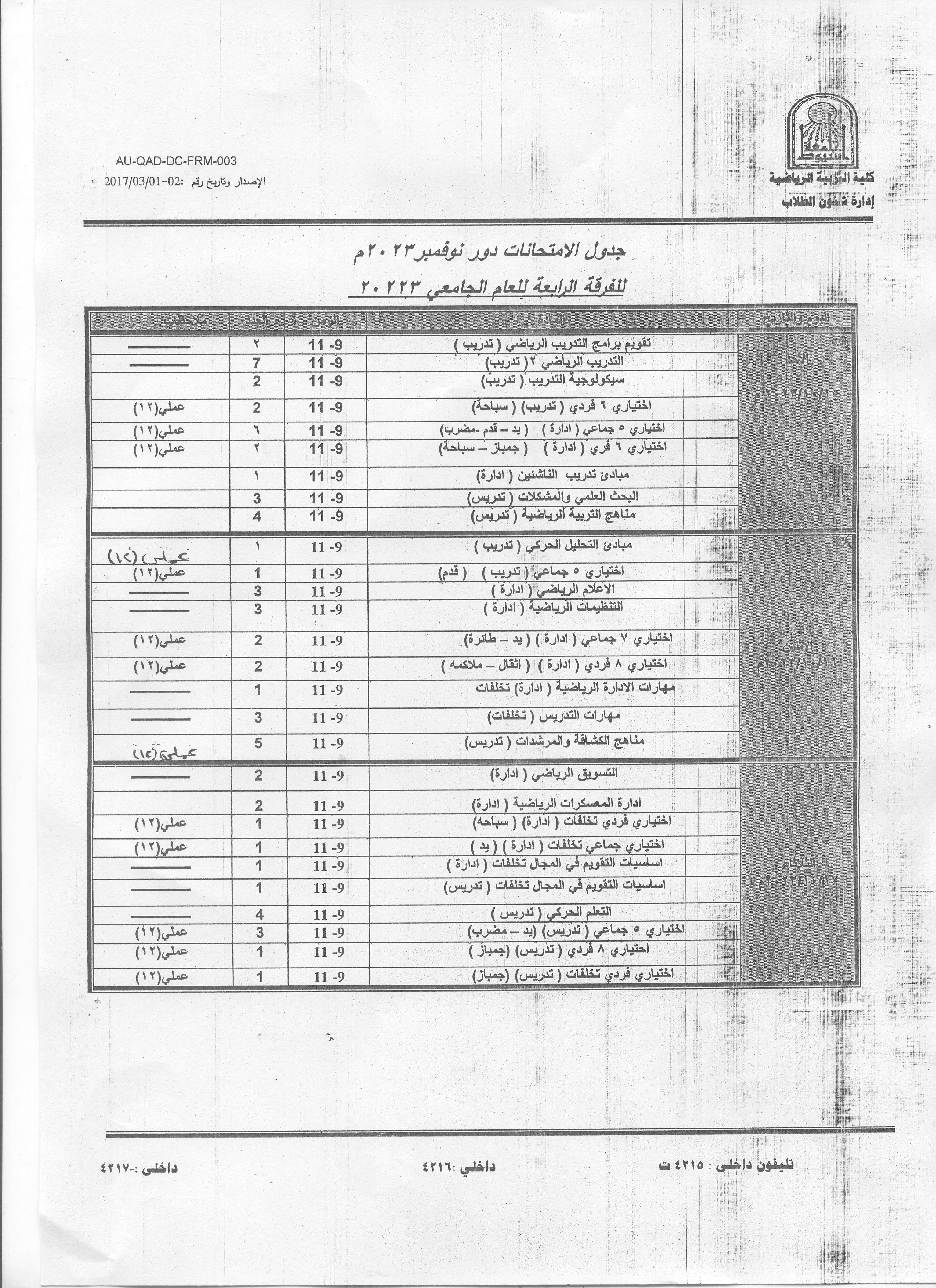 جدول امتحانات دور نوفمبر 2023 للفرقة الرابعه