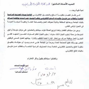 على من يرغب التقدم بطلب إلى السيد امين عام الكلية تمهيدا لعرض المرشحين على السيد ا.د عميد الكلية