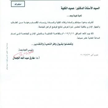 سوف يتم بمشئه الله تعالى مناقشة رساله الدكتوراة بقسم المناهج وطرق تدريس التربية الرياضية وذلك يوم الاحد الموافق 23/6/2019 فى تمام الساعه العاشرة صباحاً بقاعه أ.د/ محمد رافت تحت عنوان "