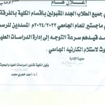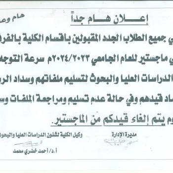سوف يتم بمشئية الله تعالى مناقشة رساله الماجستير للباحث/عبد الله عبد الرضا عبد الله اكبر طالب باحث بقسم المناهج وتدريس التربية الرياضية (وافد كويتى ) تحت عنوان "تاثير برنامج تعليمى…