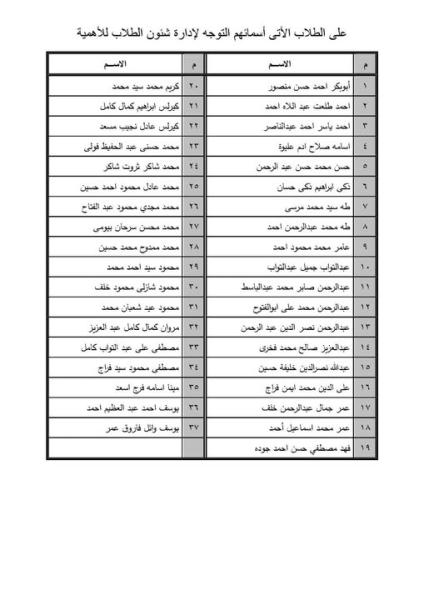 إعلان هام للطلاب 2026 30 مارس 2026 على الطلاب الموضح أسمائهم في الكشف المرفق سرعة التوجه الى ادارة شئون الطلاب بالكلية.