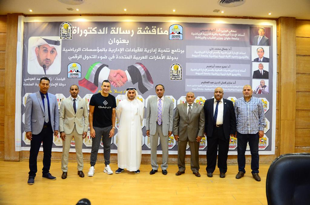 تمت اليوم الاحد الموافق 24/10/2021 مناقشة رساله الدكتوراه المقدمه من الباحث/ زكريا العوضي الاماراتي الجنسيه والمسجلة بكليه التربيه الرياضيه جامعه اسيوط بعنوان