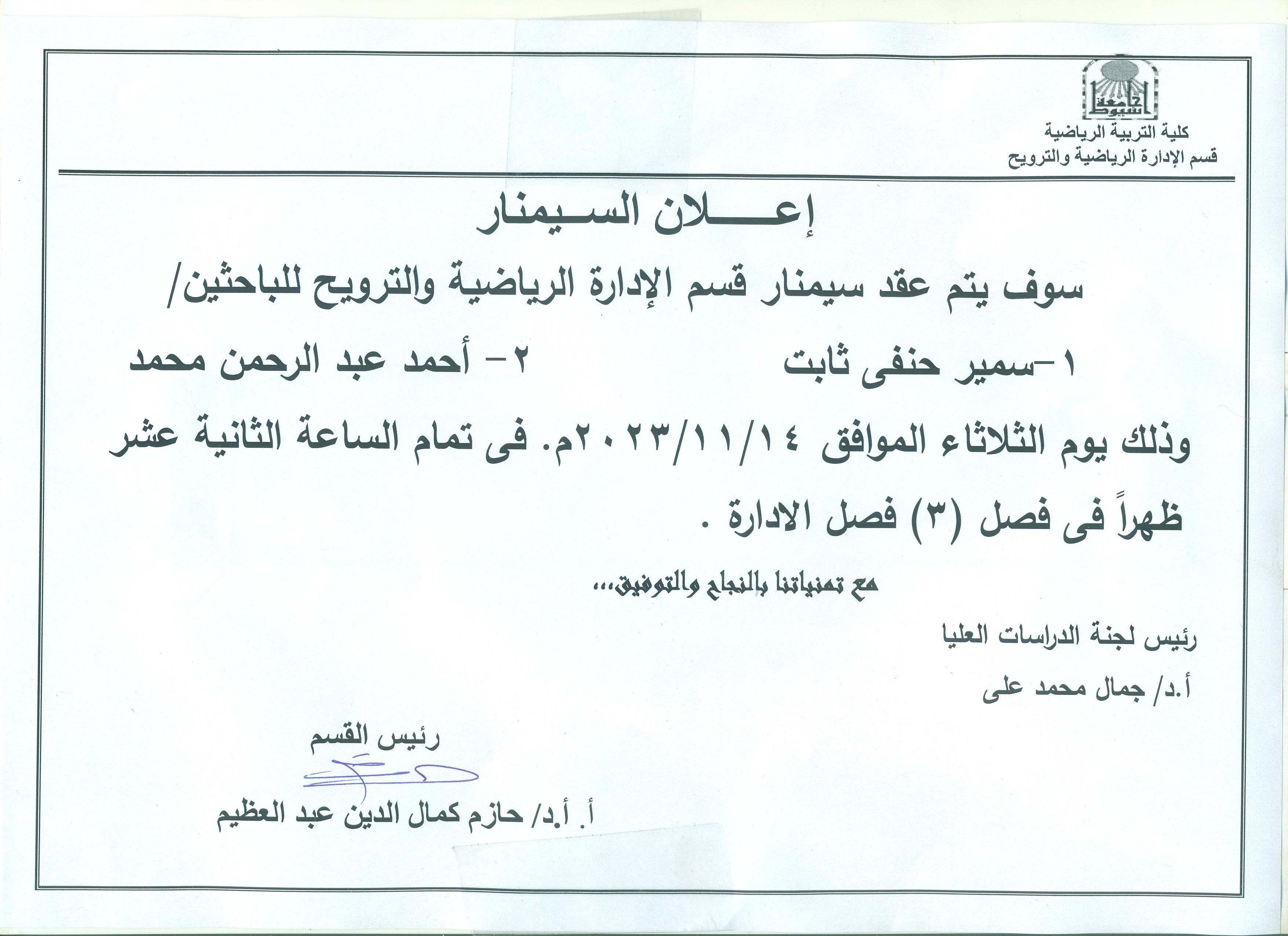 عقد سيمنار لقسم الإدارة الرياضية بفصل رقم (2)