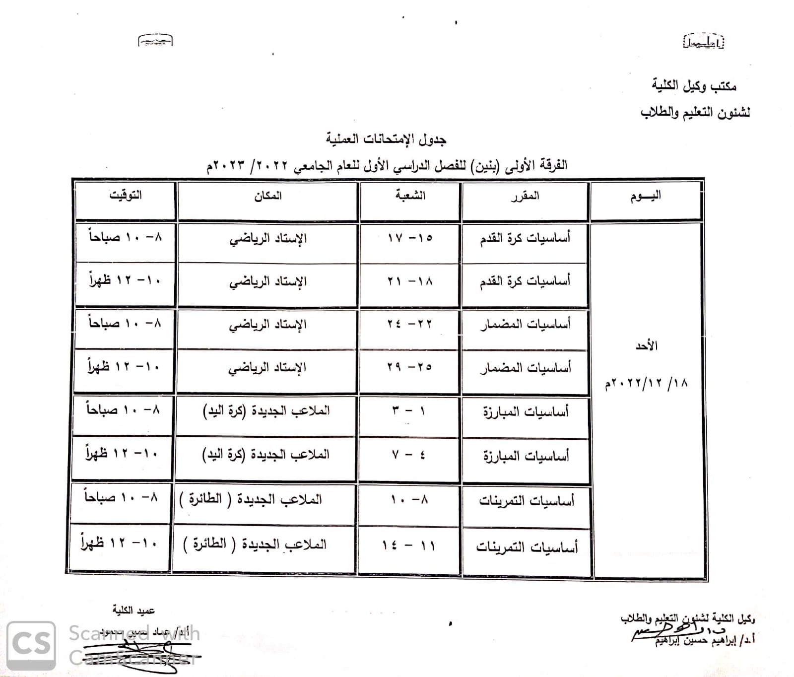 تابع الامتحانات العملية للفرقة الاولى للفصل الدراسي الاول لعام 2023