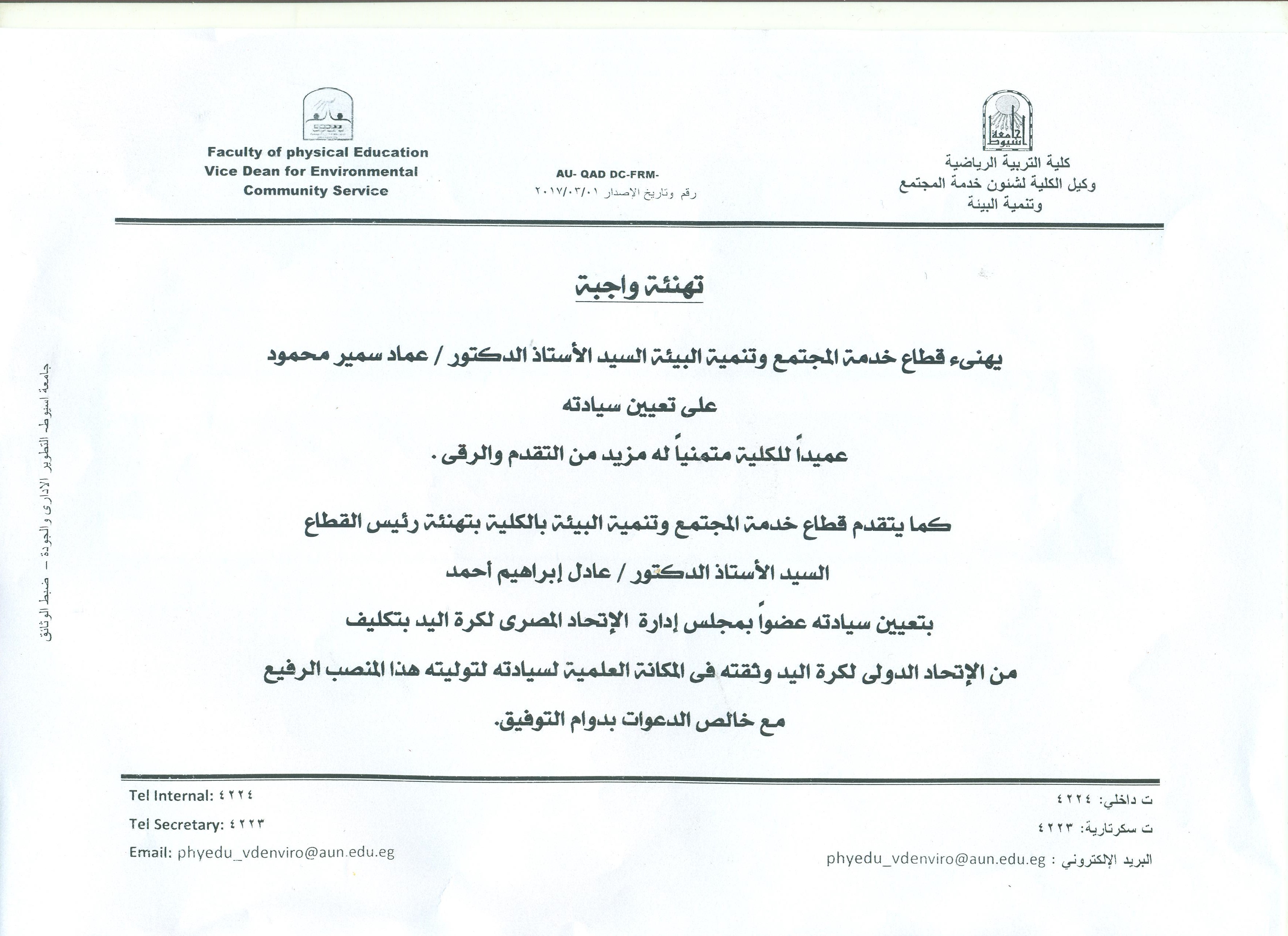 تهنئه قطاع خدمه المجتمع وتنمية البئية