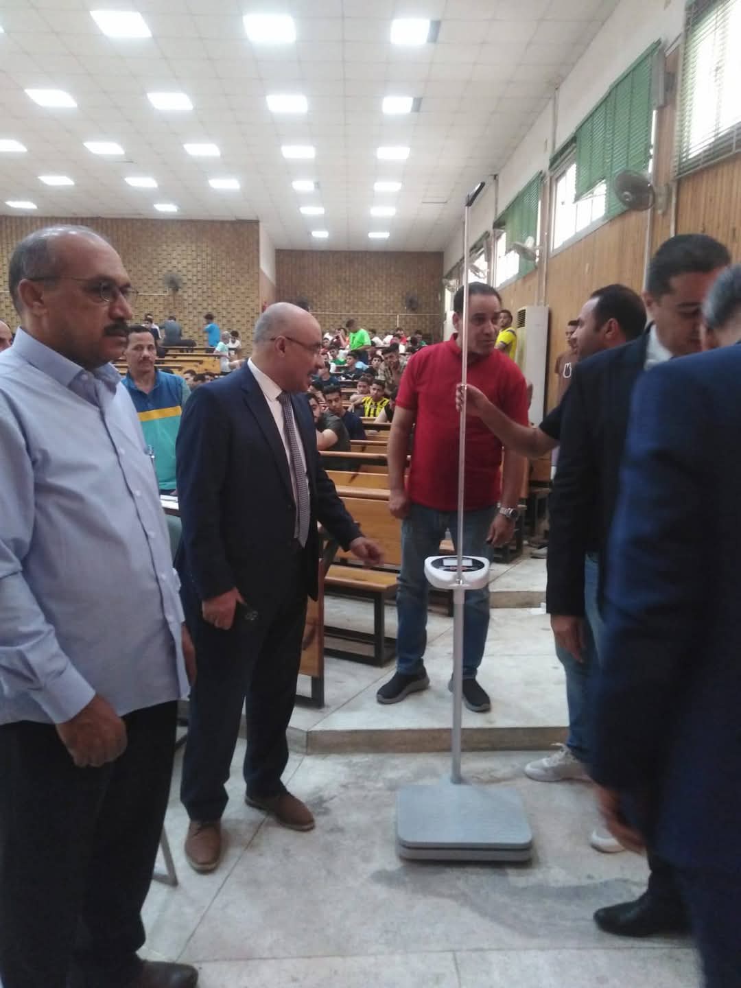 An inspection tour by the Dean of the Faculty to monitor the progress of the aptitude tests at the Faculty of Sports Sciences, Assiut University.