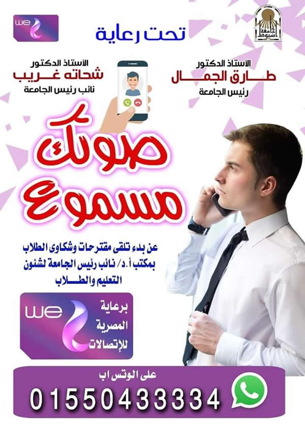 صوتك مسموع آلية جديدة لأول مرة فى جامعة أسيوط لتسهيل تلقى اقتراحات و شكاوى أبنائها من الطلاب