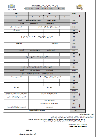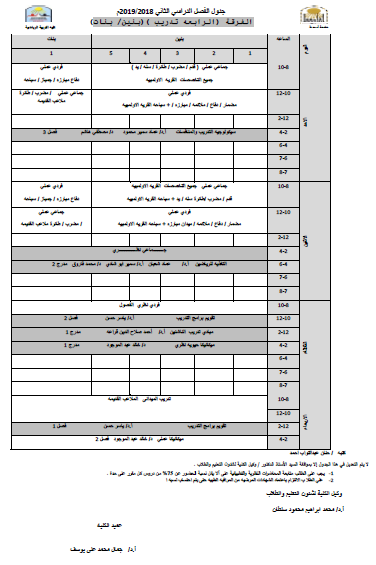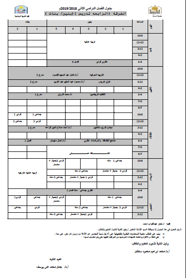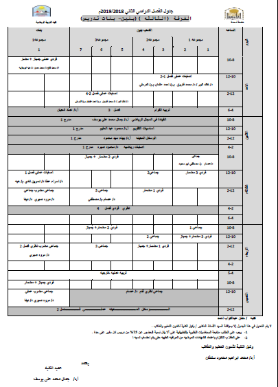 جدول الفرقة الثالثة تدريس (بنين - بنات) للفصل الدراسي الثاني