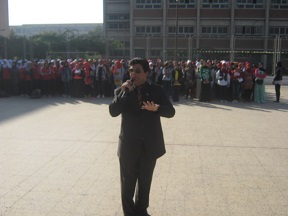 Column after fourth 1 October 2017 Under the dignified care of Mr. Prof. Dr. Ahmed Salah Qaraa, Dean of the College, the student queue was held at the college stadiums at 7:30 p.m. in the presence of the faculty members