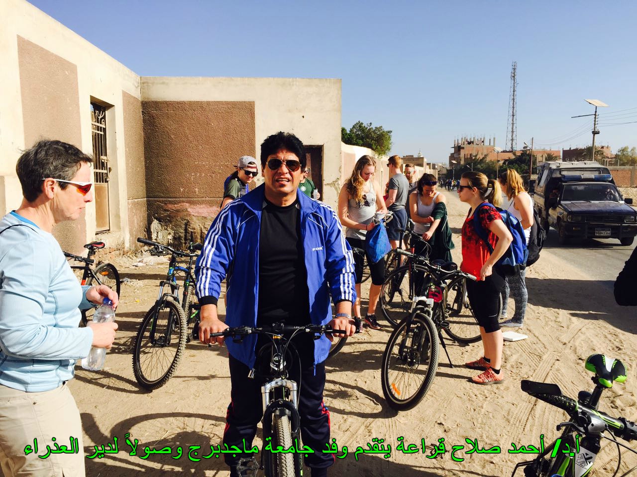 Within the framework of the distinctive international protocols between the Faculty of Physical Education of Assiut with many universities of the world, including the University of Magdborg and during visit of a student delegation from the German University of the Faculty of Physical Education The college prepared an entertainment program for the German delegation that included visiting the Convent of the Virgin Mary with bicycles in a message to the world about the security enjoyed by Egypt, and the German delegation led by Dr. Etta Okkin, head of a delegation and Mr. Prof. Ahmed Salah Qarah, Dean of the Faculty of Physical Education, were greeted by Alanba Joensen, President of the Virgin Mary.