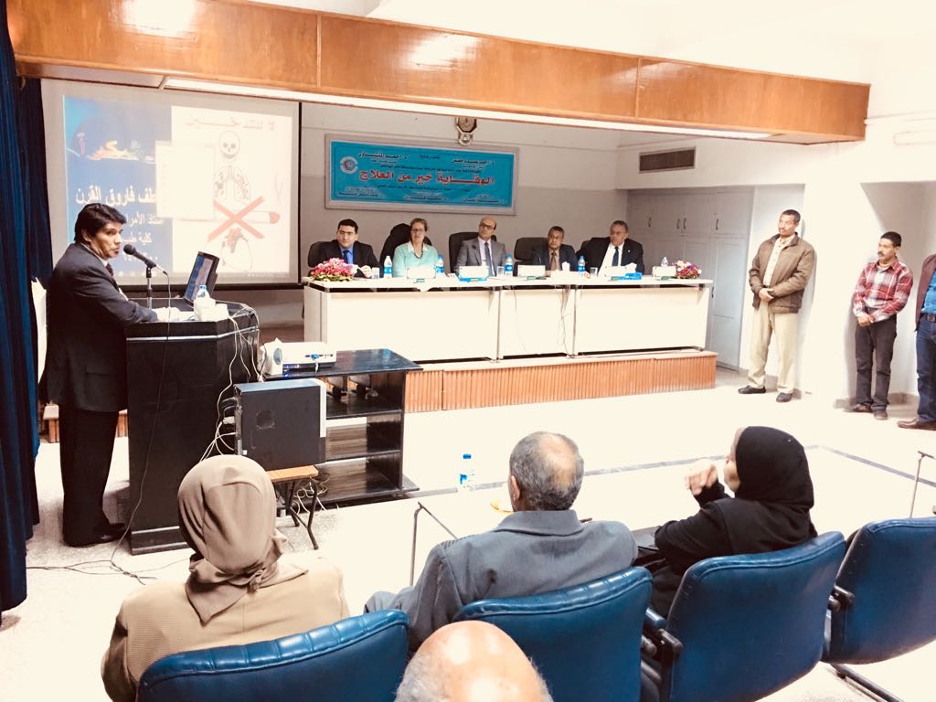 Mr. A. Dr. Ahmed Salah Qaraa, Dean of the Faculty of Physical Education, delivered his speech within the scientific day of "prevention is better than cure", which on Saturday, 23/12/2017, at 9 a.m. and 1 p.m., the conference hall was held next to the Office of the Director of the University Hospital under the auspices of a. Dr. Ahmed Abdo Jaayam Rector Dr. Ahmed Al-Menawi, dean, Faculty of Medicine, community service and environmental Development Faculty of Medicine, Assiut University