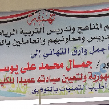 Prof. Dr. Ahmed Hasary mohammad and A. M. D/Eman Sayed Ahmed the finest congratulations to Prof. Dr. Jamal Mohammed Ali for appointing His Excellency as Dean of the Faculty of Physical Education