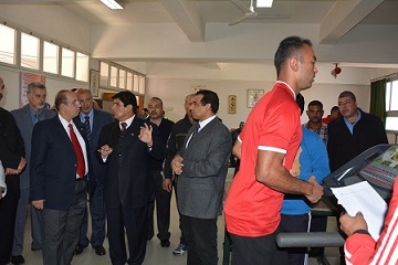 In college to welcome Mr. Dr. Prof., president of Assiut University/Ahmadabdo Jaayy, to visit his lordship at the College to open a laboratory Dr. Ahmed Abdo Jaayy for biomechanics, Prof. Doctor/Omar Shukri's Laboratory for sports physiology