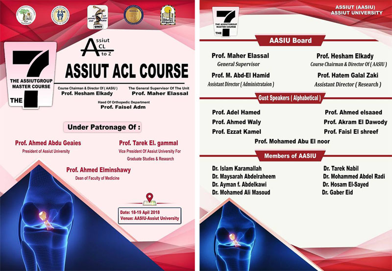 Prof. Dr. Ahmed Salah Read the Dean of the Faculty of Physical Education at the seventh Conference of the Joint Binoculars and sports injuries unit in the presence of a. Dr. Maher Al-Atsal, Chairman, University Hospital Board, Assiut University, and Dr. Hisham al-Qadi, Department of Orthopedic Surgery and fractures, Faculty of Medicine, Assiut University and members of the Faculty and specialists