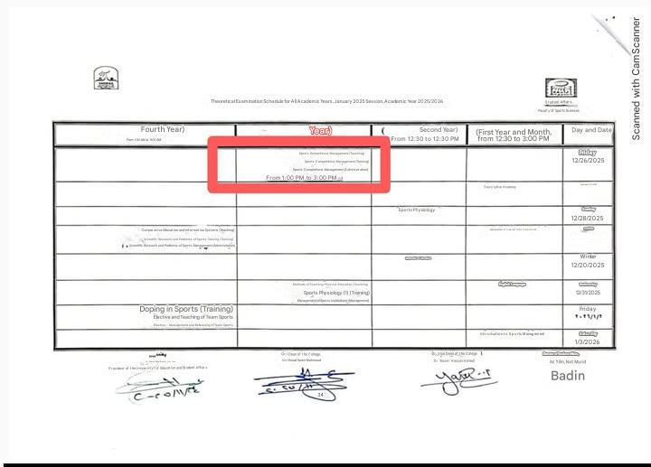 We would like to remind you that the next exam for the third year will be held on Friday, December 26, 2025, at 1:00 PM, immediately after the noon prayer. This is as per the schedule approved by the college administration.