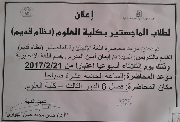 Announcement for students at the Faculty of Sciences (old system) 7 March 2017 Announcement for students at the Faculty of Sciences (old system)