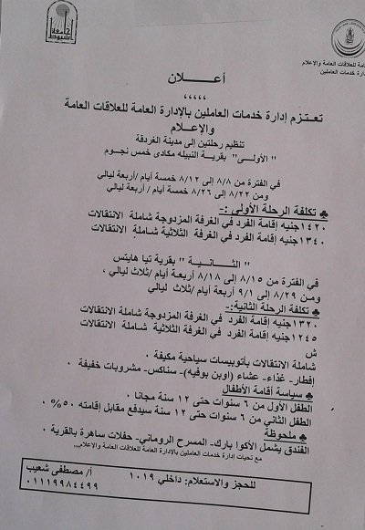 اعلان من الادارة العامة للعلاقات العامة والاعلام 30 يوليو 2015 اعلان من الادارة العامة للعلاقات العامة والاعلام