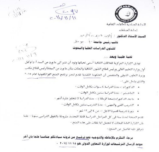 الحكومة الكندية تقدم لمصر برنامج المنح الفرانكفونية لعام 2015 12 نوفمبر 2014 الحكومة الكندية تقدم لمصر برنامج المنح الفرانكفونية لعام 2015