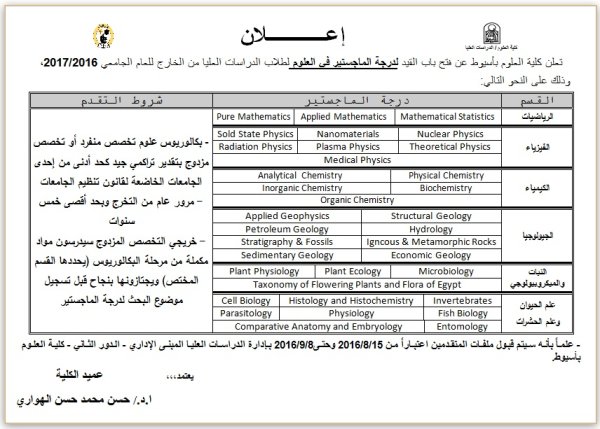 فتح باب القيد لدرجة الماجستير في العلوم والمستندات المطلوبة 30 أغسطس 2016 فتح باب القيد لدرجة الماجستير في العلوم والمستندات المطلوبة