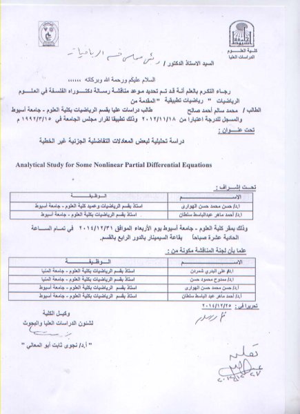 مناقشة رسالة الدكتوراه الخاصة بالطالب / محمد سالم احمد صالح 28 ديسمبر 2014 مناقشة رسالة الدكتوراه الخاصة بالطالب / محمد سالم احمد صالح