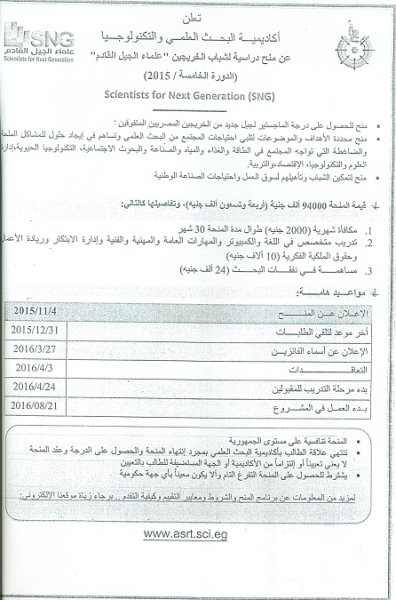 منح دراسية لشباب الخريجين من أكادمية البحث العلمي والتكنولوجيا 5 نوفمبر 2015 منح دراسية لشباب الخريجين من أكادمية البحث العلمي والتكنولوجيا