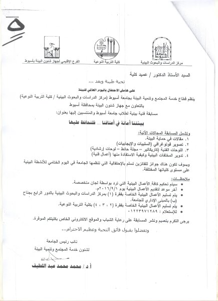 مسابقة بعنوان "بيئتنا أمانة في أعناقنا ... فلنحافظ عليها " 17 يوليو 2016 مسابقة بعنوان "بيئتنا أمانة في أعناقنا ... فلنحافظ عليها "