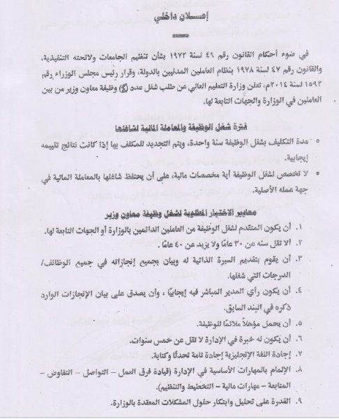 مطلوب 4 معاون لوزير التعليم العالى من العاملين الدائمين بالجامعة 19 أكتوبر 2014 مطلوب 4 معاون لوزير التعليم العالى من العاملين الدائمين بالجامعة