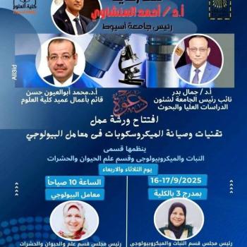 في إطار دعم البحث العلمي وتطوير قدرات طلاب الدراسات العليا والباحثين، نظمت كلية العلوم – جامعة أسيوط بالتعاون بين قسمي النبات والميكروبيولوجي وعلم الحيوان والحشرات ورشة عمل متخصصة بعنوان: