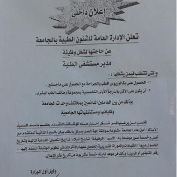 إعلان من الإدارة العامة للشئون الطبية بالجامعة