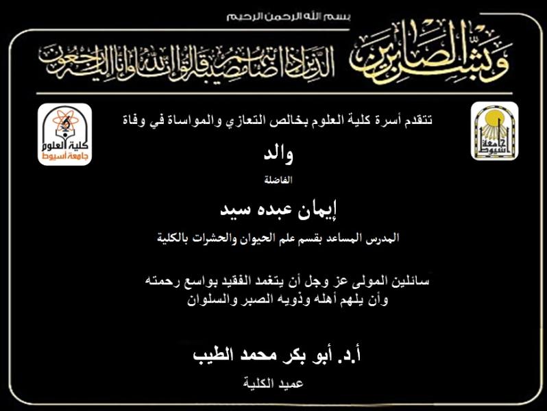 عزاء أسرة كلية العلوم في وفاة شقيق الفاضلة الدكتورة / سوزان احمد تمام - الأستاذ المساعد بقسم النبات والميكروبيولوجى