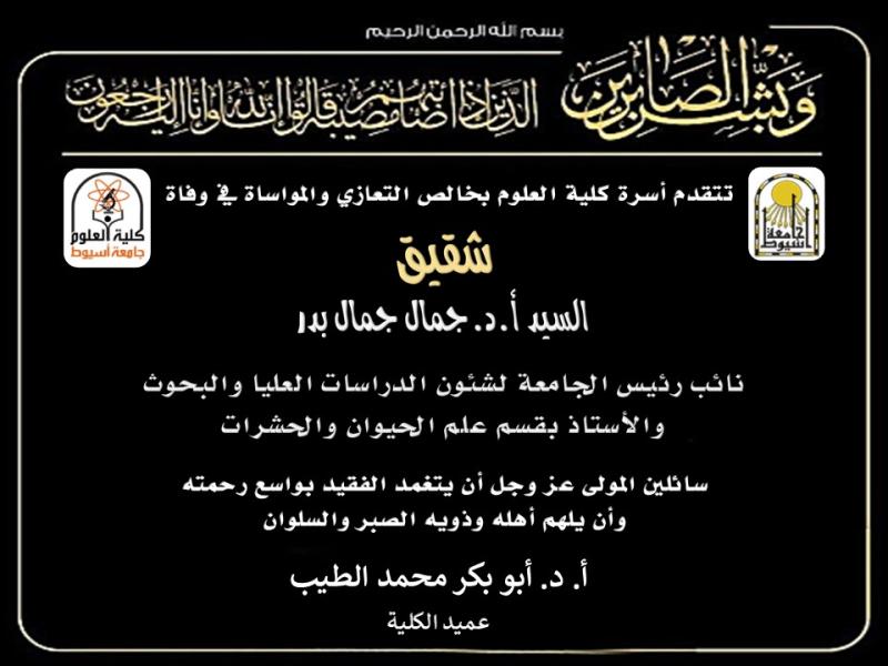 عزاء أسرة كلية العلوم في وفاة شقيق أ. د. جمال جمال بدر في وفاة شقيق سيادته.